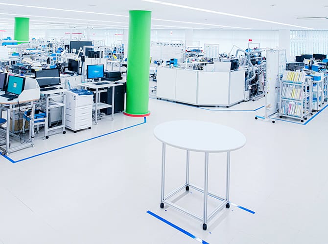 実際の装置で弊社製品を試していただくスペース。アクセスが良く、世界各国からお越しいただいております。